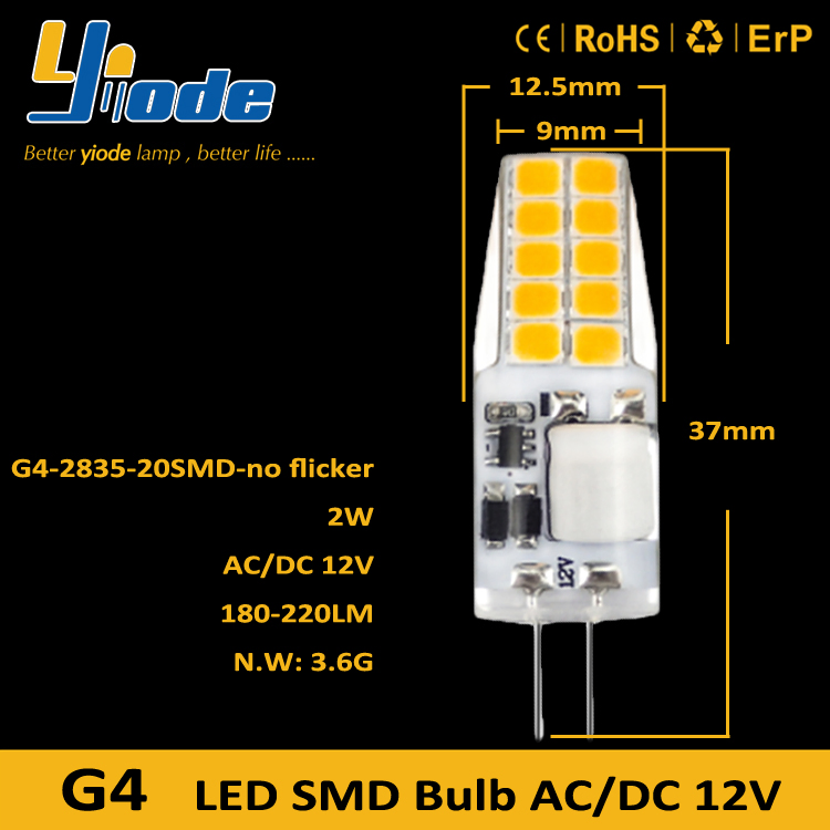 Ideal replacement of incandescent lampInstant-on to full brightness, no need to wait for warming up the lamp. Standard G4 Standard Bi-pin base, can be easily fitted instead of ordinary halogen bulbs.