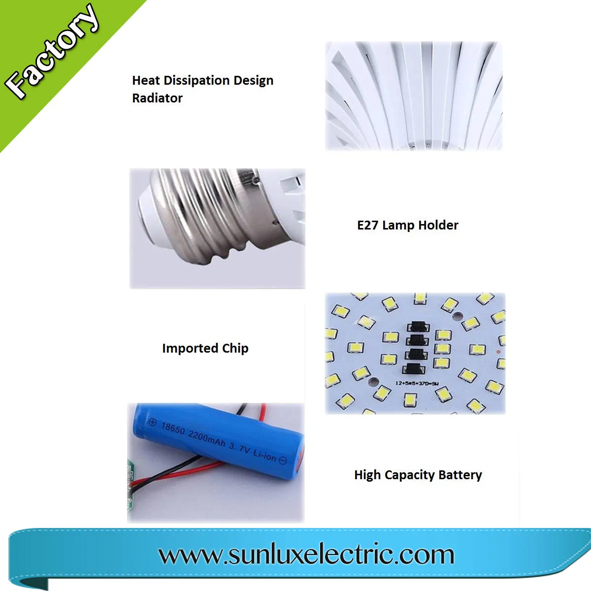 Plastic outside with aluminum inside with IC driver ,just offer us your inquiry ,we can produce the lamp with your own brand(OEM),we also have our own Sunlux brand for your second choice.