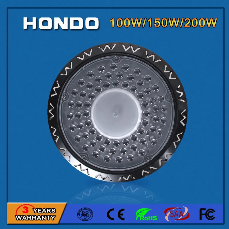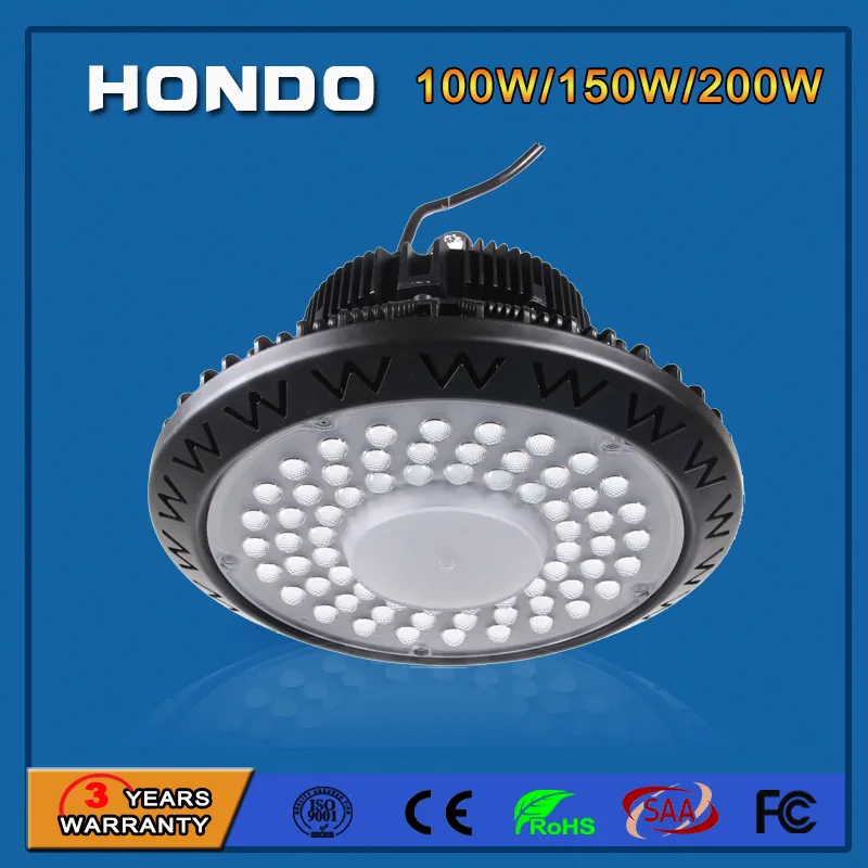 SMD2835/3030 110-130lm/W 150W Industrial LED High Bay Light Main features descriptions:ModelLED High Bay Light HD-HID-BZ150ASizeØ310×H165mmShell materialAluminum heat sink fin+PC coverLED High Bay Light Wattage150WLED Qty177pcsAC input85-265VLED typeSMD2835/3030Luminous output11......