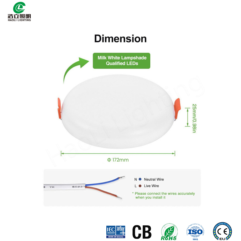 Zhongshan Haoli Lighting Co., Ltd. Main Products:* LED Downlight* LED Panel Light* LED Tube Light* LED Square Panel Light* LED Rimless Panel Light* LED Track Light* LED Flat Light* LED Wall Lamp Model NumberPowerDimension(mm)Cut Out Size(mm)Pcs/CtnMaster ctn(cm)CCTVoltageHL-PL401410Wφ90mm&am......