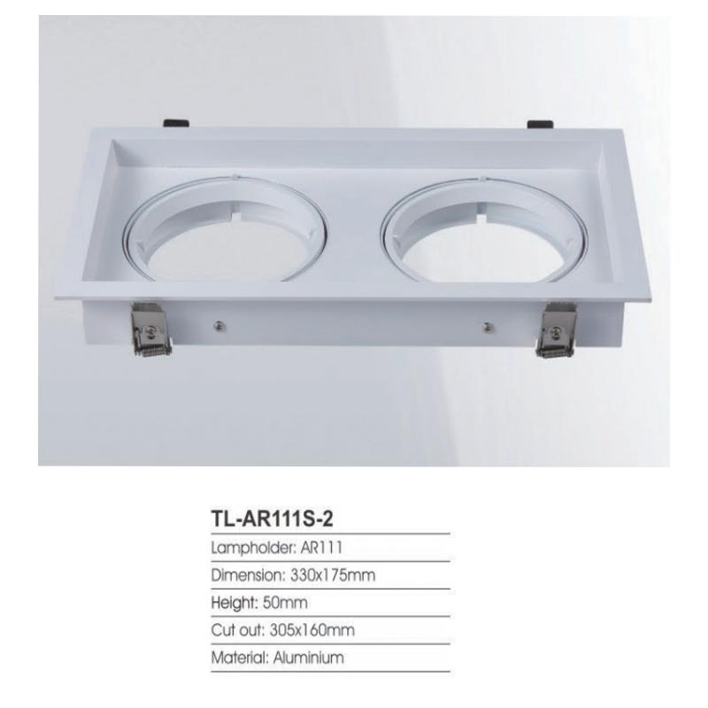 Lampholder:AR111Dimension: 330*175mmHeight: 50mmCut out: 305*160mmMaterial: AluminiumQuick DetailsLight Source:Halogen Bulbs, FluorescentInput Voltage(V):220VLamp Luminous Flux(lm):500CRI (Ra>):80Lamp Body Material:Die-cast aluminumCertification:ce, EMC, LVD, RoHS, Reach, VDEModel Number:AR111-S-......